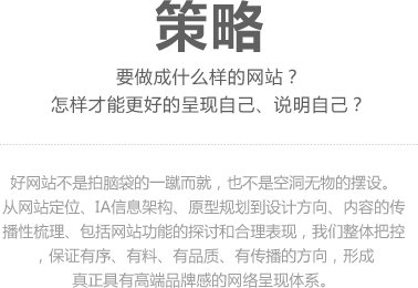 我们承担全国性门户级大型网站平台的构建任务,从构架、IA、设计、技术等多方面实力保障,实施整合型全方位打造。